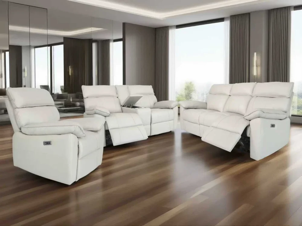 Transform your living space with this luxurious white power reclining set designed for ultimate relaxation. Featuring soft, high-quality suede-like upholstery and deep plush cushioning, this set brings both comfort and style to any home.Perfect for living rooms, media rooms, or entertainment spaces—this set delivers comfort, function, and a stylish modern