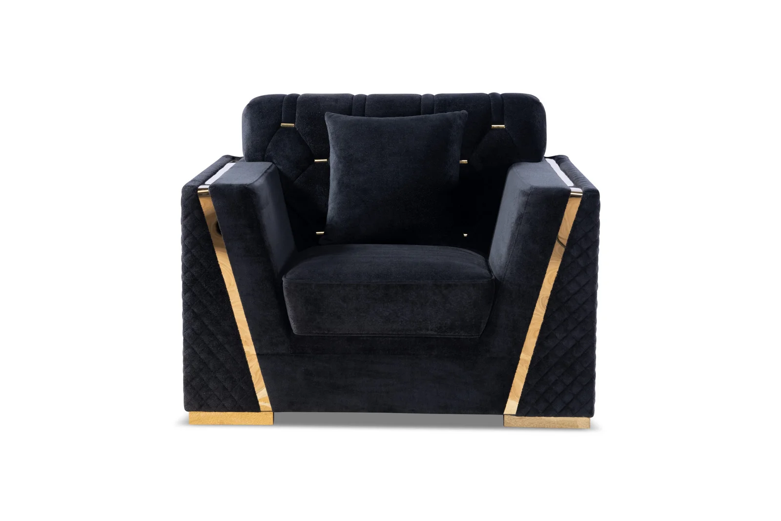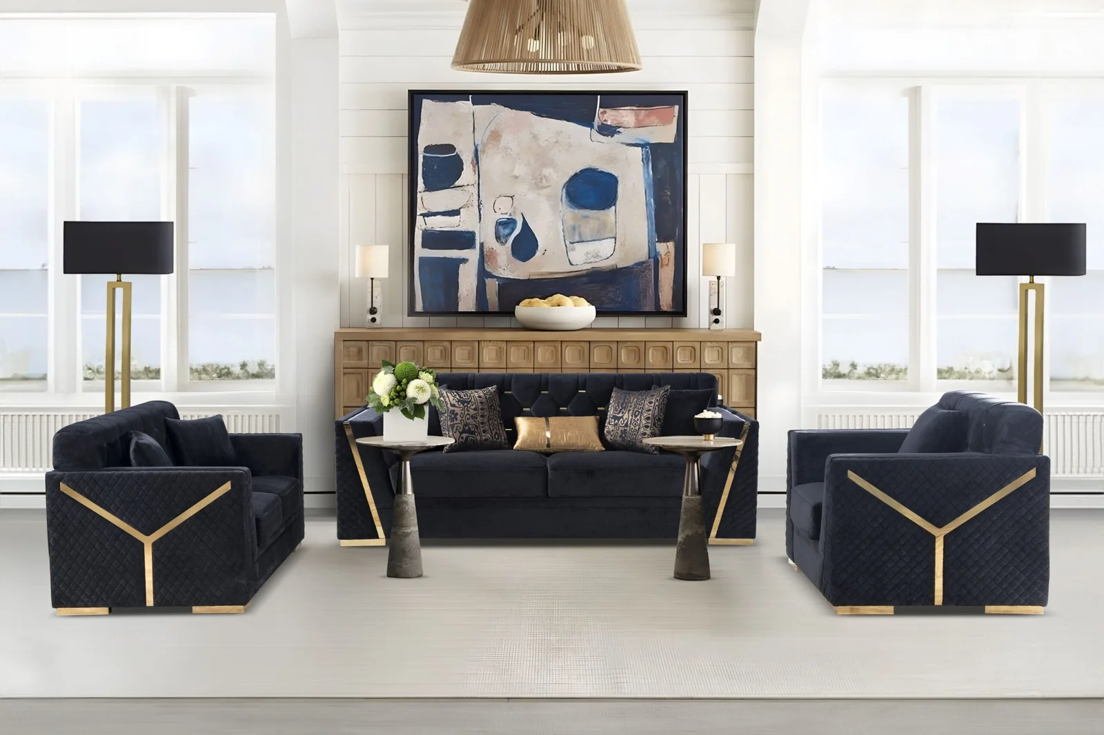 Add a touch of refined charm to your living space with this 3-piece black and gold velvet collection. Designed with rich tones, soft textures, and luminous metallic accents, it brings warmth and sophistication to any modern home.